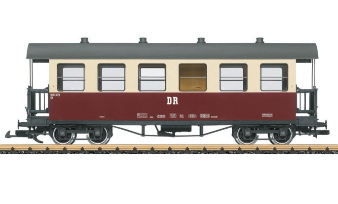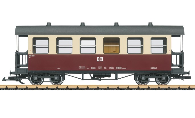 Modell eines Personenwagens der Deutschen Reichsbahn aus dem Netz der Harzer Schmalspurbahn. Originalgetreue Farbgebung und Beschriftung der DR Epoche IV. Viele angesetzte Details, Inneneinrichtung mit Toilette. Metallradsätze.